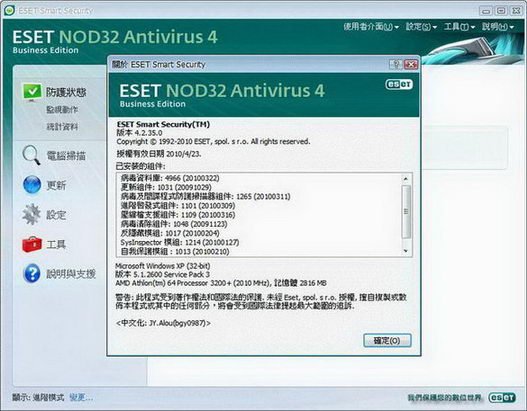 ESET NOD32 Smart Security 4.2.40+使用說明 防毒軟體 繁體中文破解版